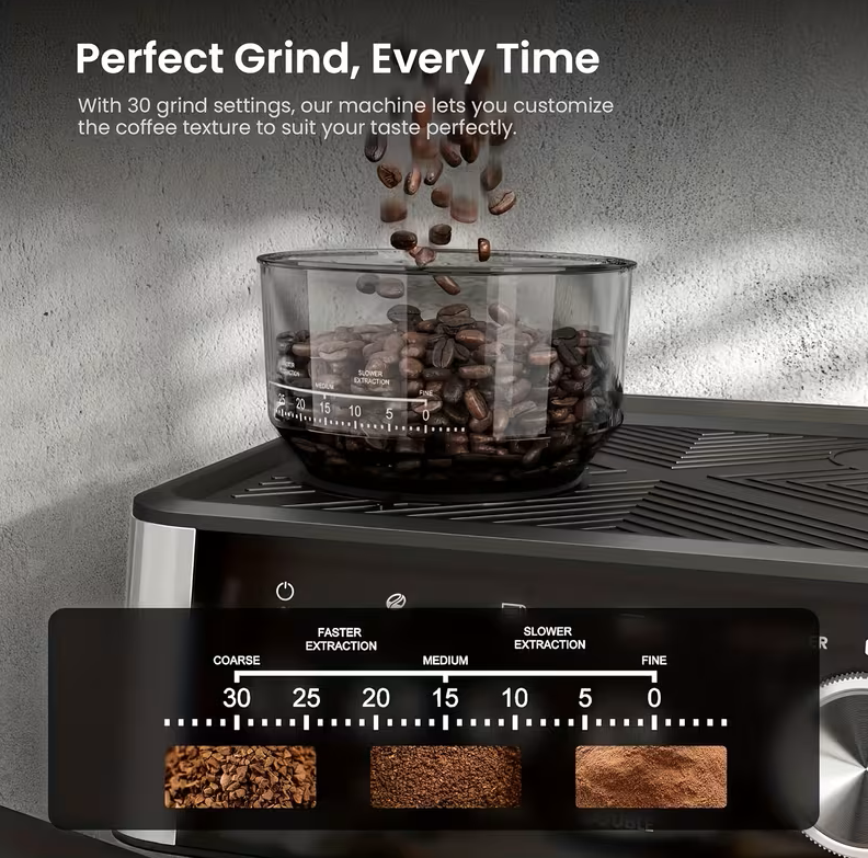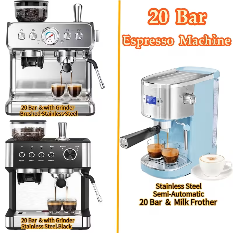 Bring café-quality coffee into your home with this powerful 20 Bar Espresso Machine with Built-In Grinder. Designed for espresso lovers who want precision, performance, and modern style, this machine delivers rich espresso shots, smooth cappuccinos, and perfectly frothed milk.