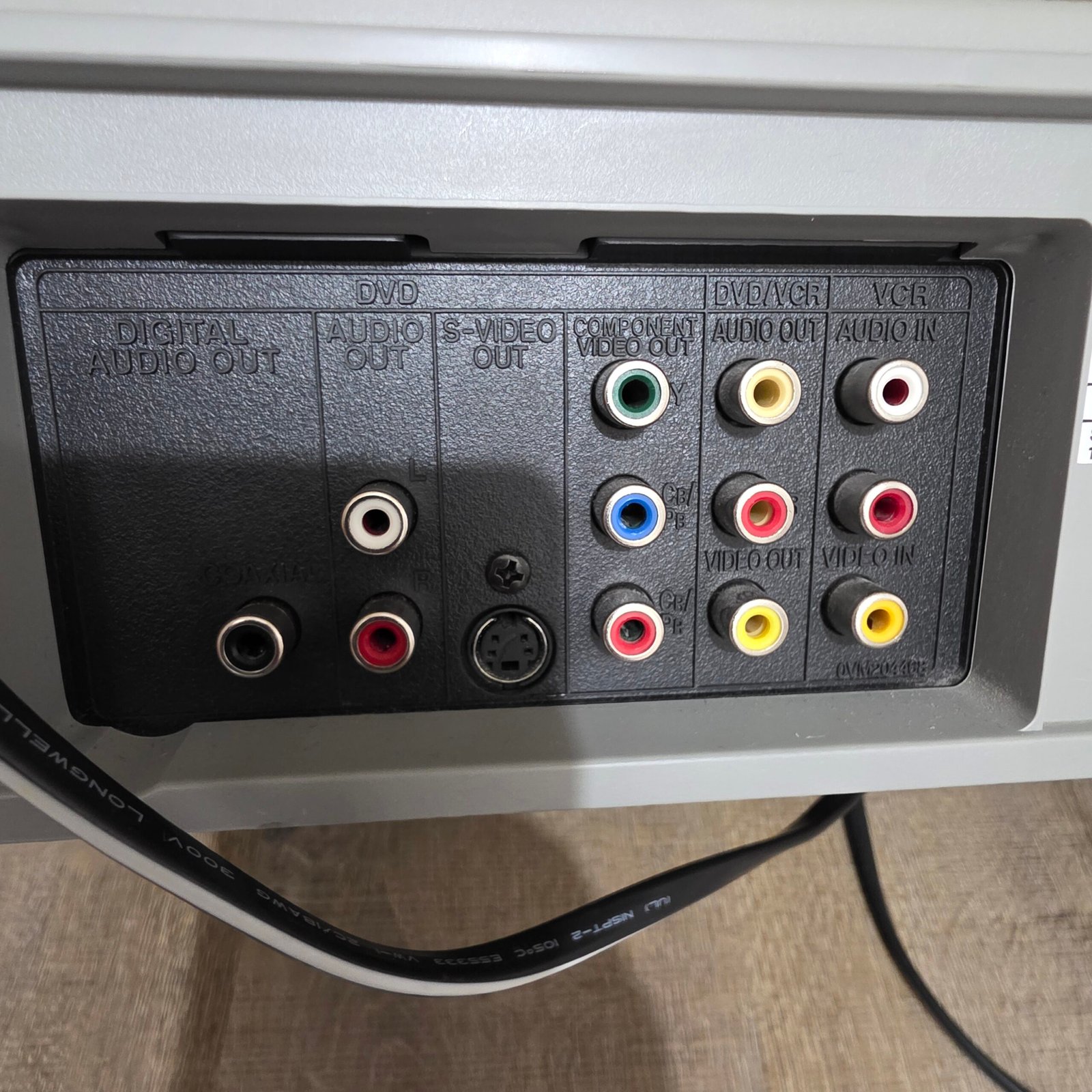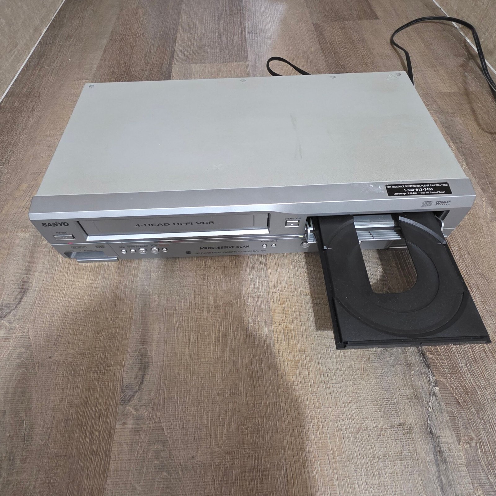 This Sanyo DVW-7200 DVD Player & 4-Head Hi-Fi VCR Combo Unit is fully tested and working. DVD tray opens and closes smoothly, VCR loads tapes, plays, rewinds, and fast-forwards without issues. All rear AV ports and front AV inputs are intact.